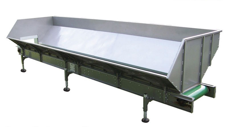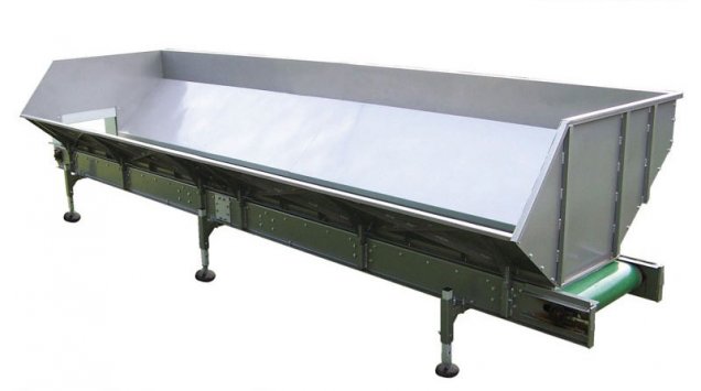 Продукт (овощи или корнеплоды) по лотковому транспортеру подаются в весовой бункер. Когда в бункере набирается необходимый вес, конвейер останавливается, и продукт высыпается приготовленную тару.